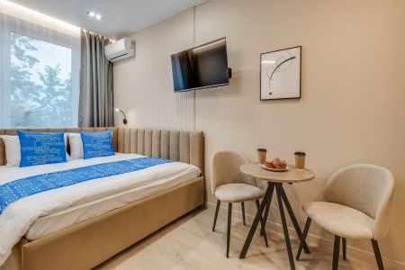 Комплекс предлагает гостям 3 категории современных комфортных номеров, полностью оборудованных для проживания в любой сезон. В апартаментах сделан качественный дизайнерский ремонт и имеется все необходимое:
